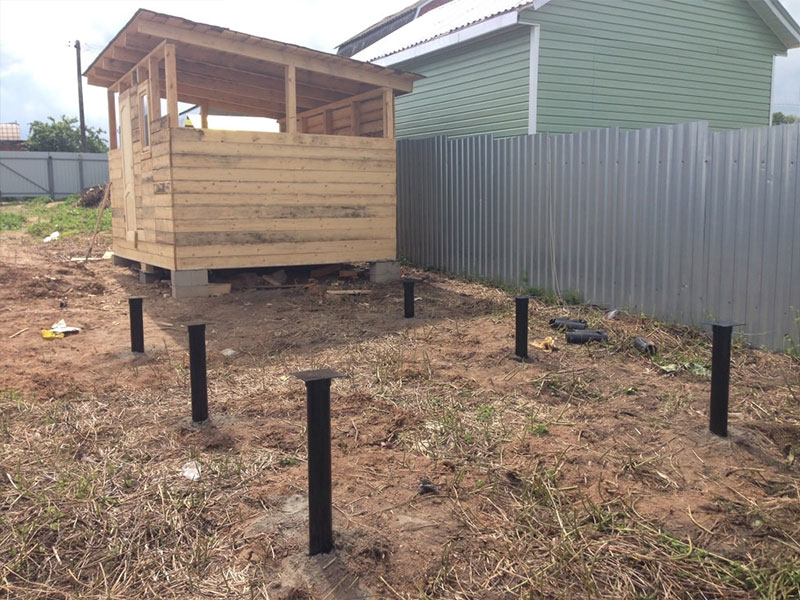 Для определения типа почвы и уклона участка выполняется пробное бурение. Мастер рассчитывает необходимую длину и диаметр опорных стержней. По результату расчета изготавливаются сваи.