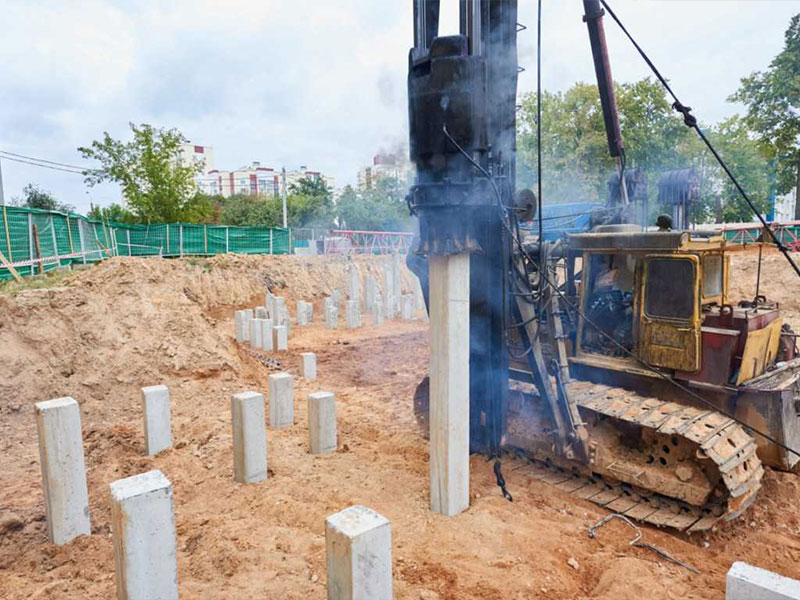 Мы используем современное собственное оборудование и технические решения при забивке свай. Это обеспечивает высокую точность и качество работ, что является ключевым фактором для надежности фундамента.