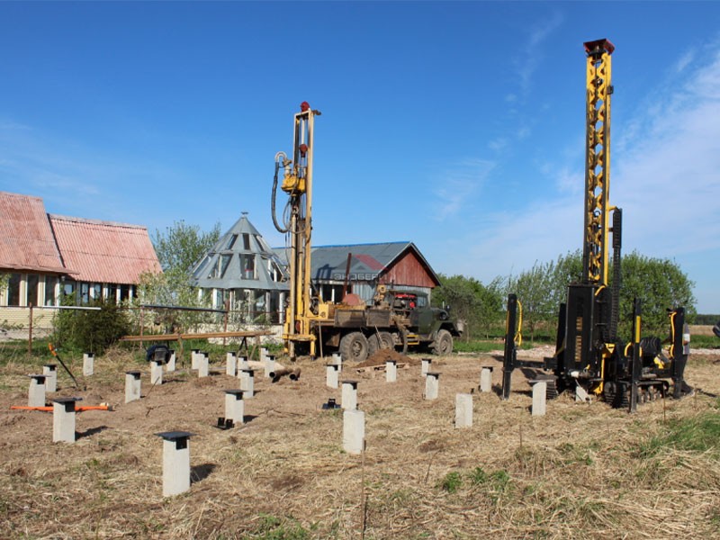 Мы проводим геологическое исследование участка, чтобы определить тип грунта и глубину залегания воды. Это важно для выбора подходящего типа свай и их длины, чтобы обеспечить надежное закрепление фундамента.